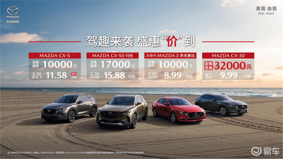 告别酷暑,自在出行。即日起至2024年8月31日,长安马自达“高驾值SUV双子星”盛惠“价”到:MAZDA CX-30 2.0L车型售价9.99万起,2024款MAZDA CX-5 2.0L自动挡车型限时售价11.58万起,为国内市场用户再加合资紧凑型SUV高质价比选项。
