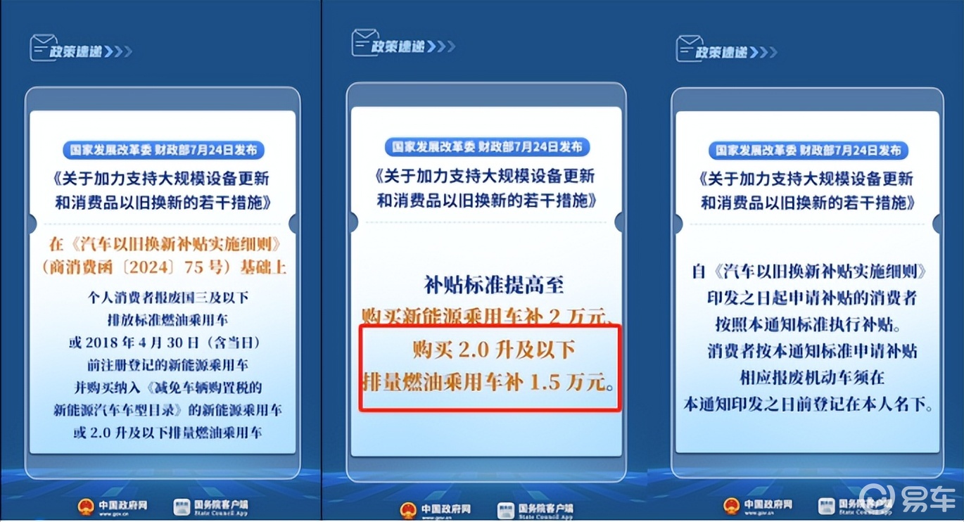 想换车的朋友,收到消息了吗?全国以旧换新补贴政策翻倍,报废旧车并购买2.0L及以下燃油乘用车的补贴从7000元提高至1.5万元!