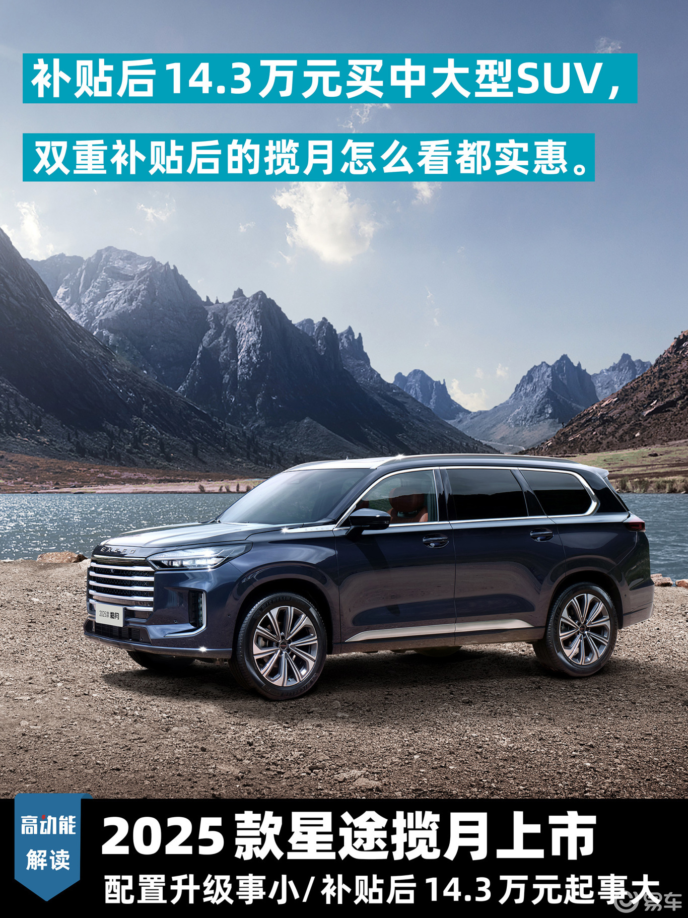 我觉得,2025款星途揽月是目前唯一让老用户内心“五味杂陈”的年度改款,配置方面的提升事小,5万元的官补和国补事大。补贴后14.3万元起吸引的不光是喜欢中大型SUV的锚定用户,更是一次让年轻用户“小车换大车”,顺利迎接家庭人口和结构变化的好机会。