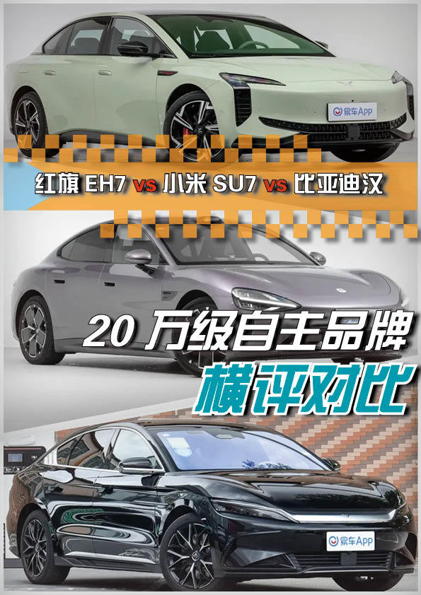 (原标题:20万自主品牌横评对比,红旗EH7、小米SU7和比亚迪汉)
