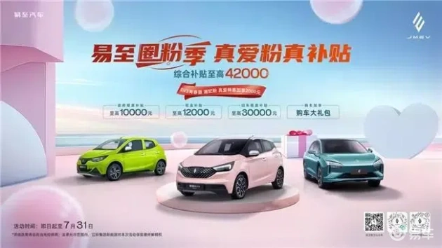 在这场购车盛宴中,易至汽车的明星之作——EV3青春版,凭借其卓越的性能表现与超凡的性价比,成为了众多消费者的首选。对于符合国家置换升级政策的用户,EV3青春版不仅提供了国家最高10000元的报废补贴,还额外享有易至汽车赠予的3000元现金礼遇与5000元置换补贴。若所报废的旧车恰好为JMEV品牌,更可额外获得至高20000元的专属报废补贴,多重优惠叠加,让购车成本实现最大化降低。而对于不符合国家置换政策但仍有增购或换购需求的用户,易至汽车同样展现了其非凡的诚意,除了提供3000元现金补贴外,还可选择置换/增购/金融贴息中的任意一项,享受额外5000元优惠。若旧车为JMEV品牌,更可独享至高30000元报废补贴。尤为值得一提的是,选择独特湘妃粉车身配色的EV3青春版,还将额外获得2000元色彩专属礼遇,综合优惠力度最高可达40000元,真正实现了性价比的极致飞跃。