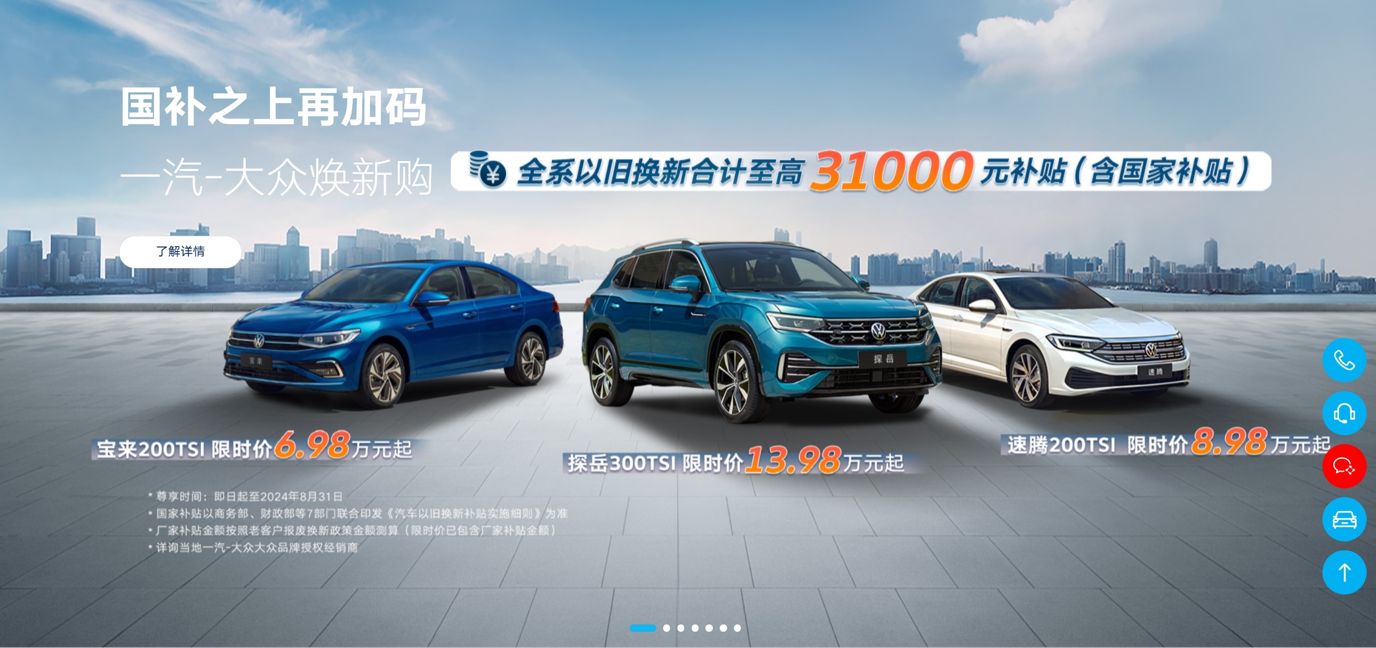 此次补贴政策的核心亮点在于其全面的以旧换新优惠,凡是在此期间参与以旧换新活动的消费者,均可享受来自一汽-大众的高额补贴,补贴金额最高可达3.1万元(此金额已包含国家相关补贴)。