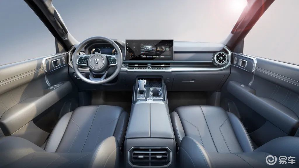 坦克400 Hi4-T的内饰布局更传统,驾驶席正前方为全液晶仪表盘,中央区域是一块大尺寸悬浮式中控屏,并且常用功能都采用了实体按键,更受老司机欢迎。内饰中金属质感饰条呼应了外观的机甲风格,配以数字化点阵打孔设计元素,展现出层次分明的现代感。科技配置方面坦克400相对“朴素”一些,少了一块副驾娱乐屏,但例如座舱四区域可完成连续输入的智能语音交互、应用商店的在线应用拓展等主流功能并没有缺失,而相比豹5多出的手机互联功能其实在日常用车中更为实用一些。