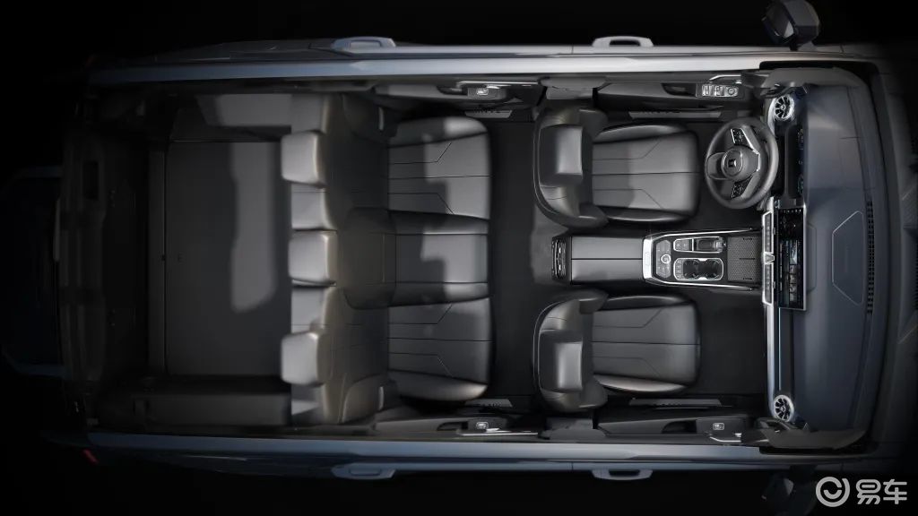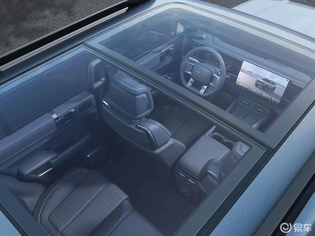 坦克400 Hi4-T的车身尺寸相比豹5具有一定优势,其长宽高分别为4985mm、1960mm、1900mm,轴距2850mm,由于有着更长的轴距,它的车内纵向空间表现优异。在座椅材质方面,坦克400 Hi4-T采用更高级的Nappa真皮包覆,座椅填充物厚实舒适。后备厢常规情况下装载容量为566L,放倒后排座椅后可扩展至1803L。不过需要指出的是,由于坦克400 Hi4-T的电池主要布置在后备厢下方的大梁内,因此后备厢地台高度偏高,取放重物时相对费劲,好在放倒第二排座椅后同样可以形成纯平地台,露营场景中铺床比较方便。
