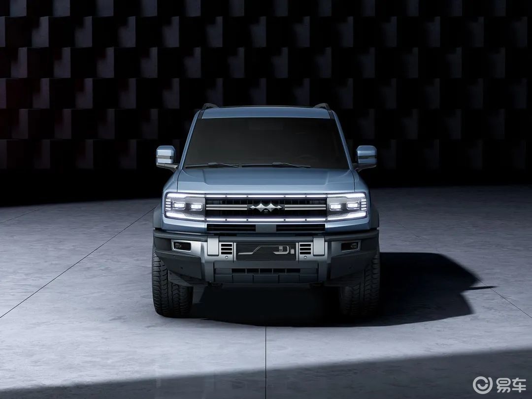 尽管这两款车型都定位硬派SUV,但它们的“硬”看起来却各有不同。豹5的设计更符合消费者对硬派SUV的传统认知,直来直去的方正车身有些路虎卫士、奔驰大G的影子。细节上同样不乏亮点,前脸的开放式格栅和环状灯带在夜晚十分抢眼。而下方粗犷的包围和金属护板,则在进一步强化越野属性的同时也提升了车辆的接近角。车侧造型简洁干练,前后轮拱造型立体,裙边和轮眉的黑色组件同样彰显硬朗气质。车尾的“8”字形尾灯稳重大气,尾门采用侧开结构,并标配外挂备胎。