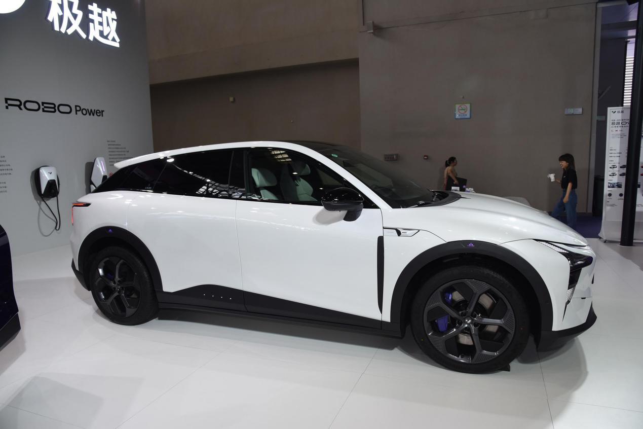 侧面和车尾,极越01也通过华丽的线条、修长的车身,以及个性化的后翼子板、电动尾翼凸显了运动感和个性化。当然,最让我心动的还是极越01的无把手电动感应门。