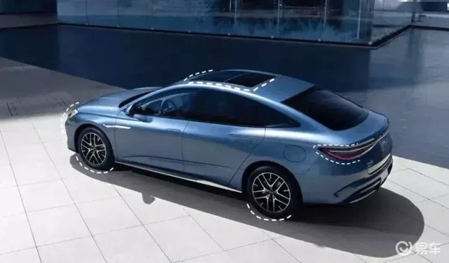 海豹07 DM-i采用了“海洋美学”设计,前脸无边界格栅显得年轻时尚,侧面腰线和隐藏式门把手增加了运动感,尾部的小鸭尾设计和贯穿式尾灯具有较强的辨识度。相比之下,海豹06则采用了比亚迪家族式设计风格,进气格栅设计在下方,侧面双腰线设计让整车充满力量感,尾部灯组同样为贯穿式设计。