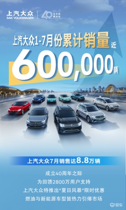 (原标题:1-7月销量60万,上汽大众稳健前行,新能源成新增长点)