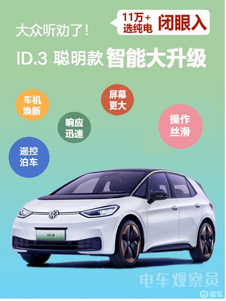 (原标题:大众听劝了!ID.3,聪明款大升级,11万+闭眼入)