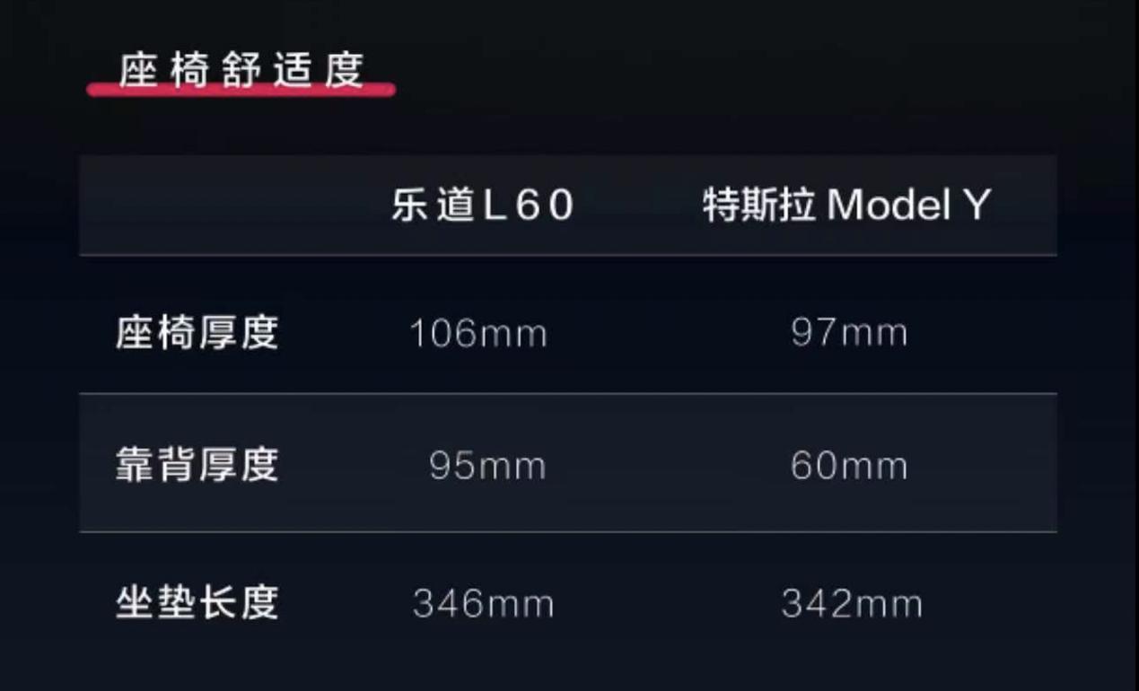 光罗列参数可能还无法直观体现乐道L60的座椅舒适程度。我们不妨将乐道L60与特斯拉Model Y进行一番对比,看看乐道L60的座椅到底有多舒适。