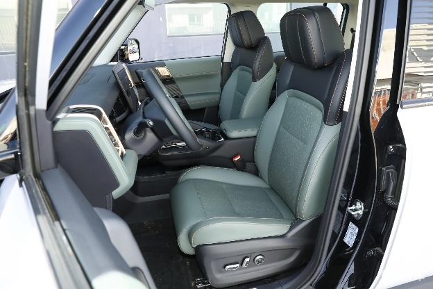 硬朗外观设计解析在外观设计方面,整体设计显得方正硬朗,前脸采用封闭式格栅造型,并且使用黑色装饰条进行勾勒,辨识度极高,两侧倒"L"形大灯造型犀利,显得前卫个性,同时搭配横向LED日行灯,车头造型饱满,再加上平直的车身线条,增加整体力量感!车身侧面采用方盒子造型。