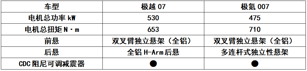 从参数对比来看两款车均拥有领先同级的强大性能,其中极越07在拥有强大爆发力的同时,注重中后段加速能力的连贯性,极氪007则更侧重于车辆的瞬时爆发力。