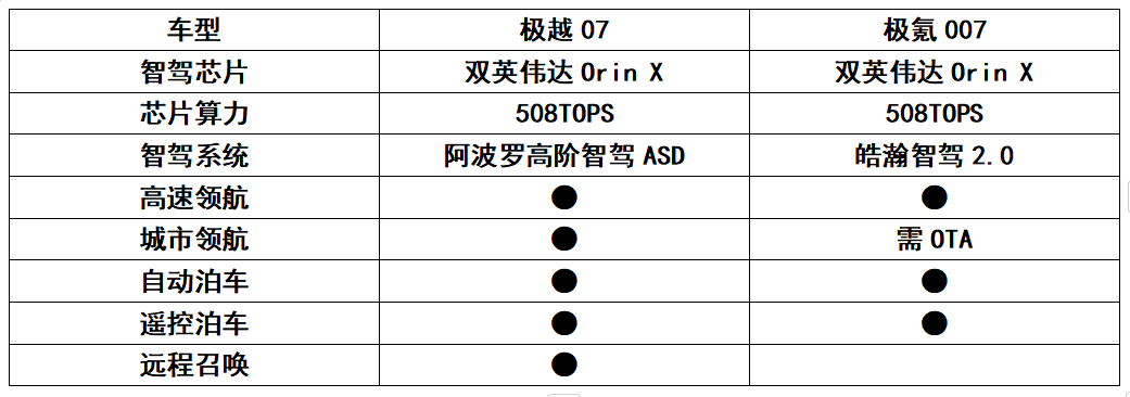 此次极越07搭载阿波罗高阶智驾ASD系统,极氪007搭载皓瀚智驾2.0,均配备双英伟达Orin X智驾芯片,高算力赋能下智驾系统将具备灵活应对复杂路况的能力。