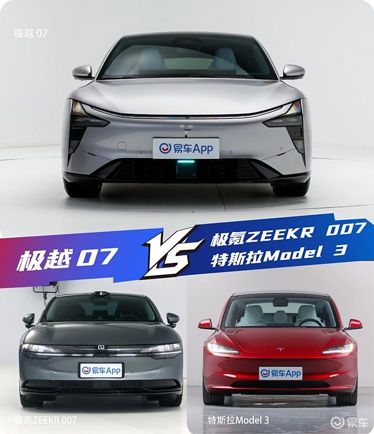 极越07与极氪007和特斯拉Model,3,谁才是最优选