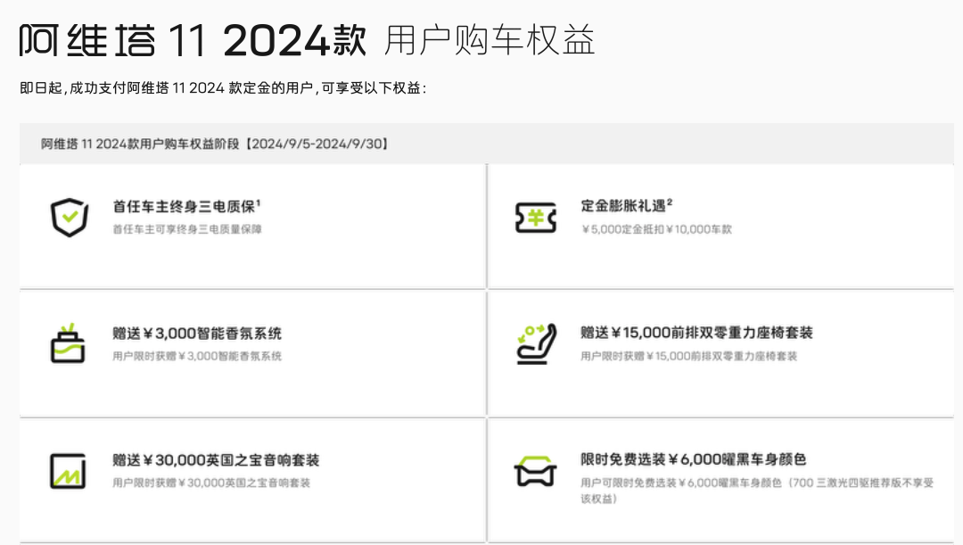 反观阿维塔11起步价就要30.08万,顶配车型的指导价格更是达到39.08万。虽然阿维塔11目前提供了5000抵扣10000元的定金膨胀礼遇等限时权益,可和极越01相比,差别还是比较大的。