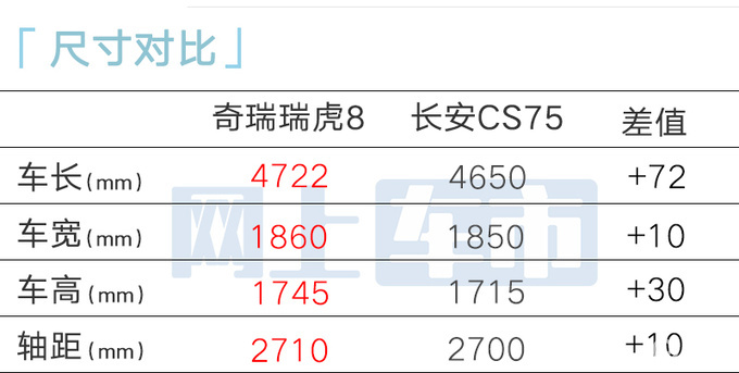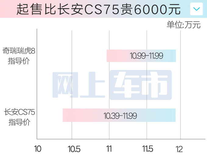 9月29日,奇瑞瑞虎8卓越版正式上市,2款车型指导价分别为10.99万元和11.99万元,起售比长安CS75贵6000元,车身较荣耀版加长22mm。