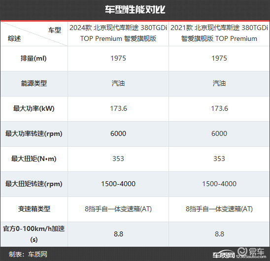 2024款北京现代库斯途共推出了5款车型,与2021款车型保持一致。售价方面,新款车型的起售价和顶配售价都有小幅度上涨,售价区间为17.18-22.08万元。为了更直观地看出新老款车型在配置层面的具体差异,我们选择了两款顶配车型进行对比,两者相差仅2000元。