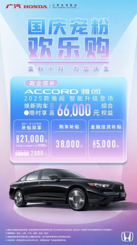 正值金秋时节,广汽本田推出了针对2025款雅阁的超级置换福利计划,包括最高可达6.6万元的各种补贴政策。对于打算换车的朋友来说,这绝对是一个不可错过的绝佳时机!