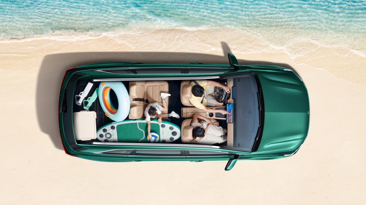 车内空间方面,蓝电E5 PLUS提供了“大五座,享七座”的魔法多变空间组合,轴距达到了2785mm,车内有效空间达3162mm,更拥有领先同级的66.4%超高“得房率”。“大五座”更舒适,二排腿部空间达到885mm,后备厢最大容积760L,容得下全家出行的舒适和热爱。“享七座”更实用,第三排腿部空间达到785mm领先同级,二、三排放倒后,形成1930*1065mm舒适阳光大床房,成为10万级插混SUV中少有的“真七座”。