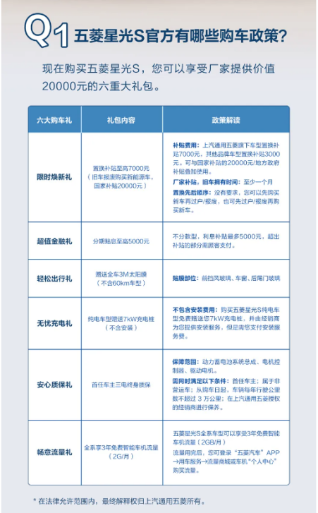 五菱星光 S 在 9 月 10 日推出 2 万元六重大礼包,包括限时焕新礼、超值金融礼、轻松出行礼、无忧充电礼、安心质保礼、畅意流量礼。相比之下,蓝电 E5 PLUS 的权益更实在,配置提升明显。