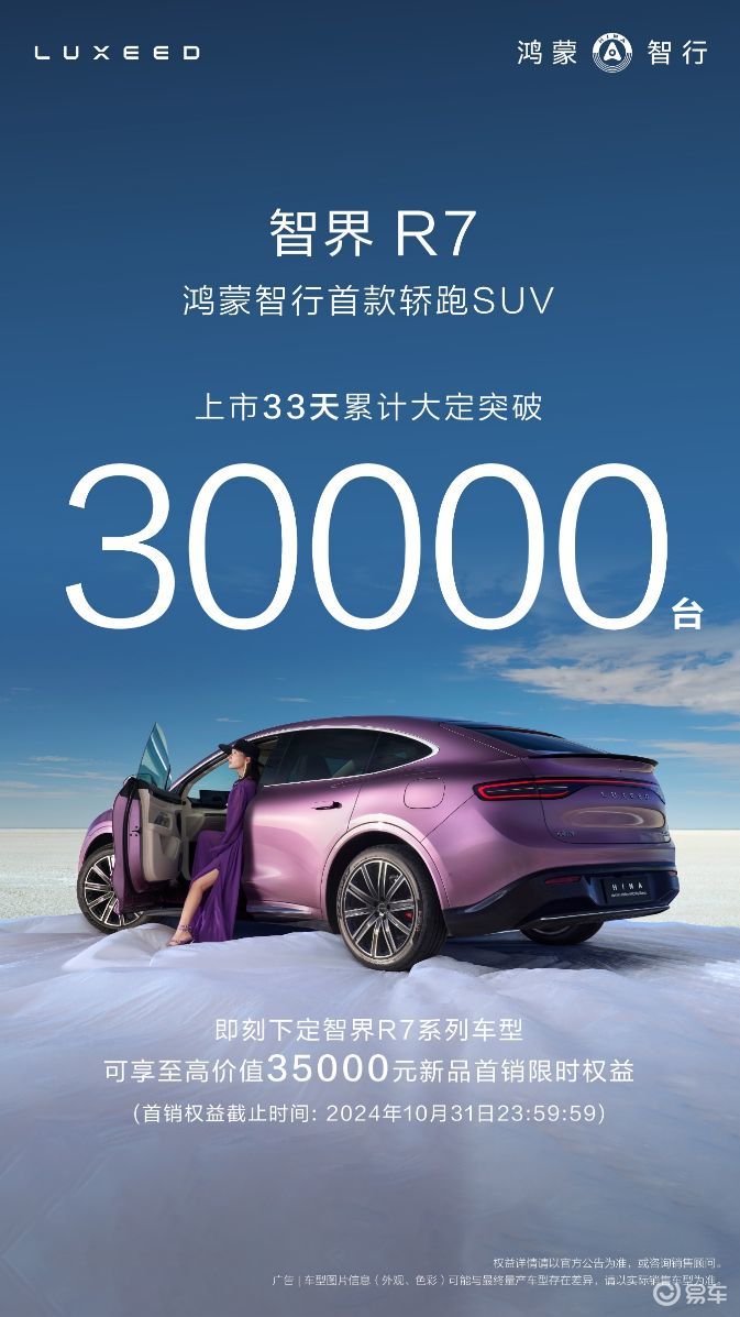 属于中国汽车的爆款时代,已经正式开启了。现在每周、每个月销量放榜时,中国品牌车型几乎都会占领榜单。近日,鸿蒙智行也发出最新销量战报,智界R7上市33天订单就已经超过了3万台,也打破了鸿蒙智行家族成员单日大定的记录。