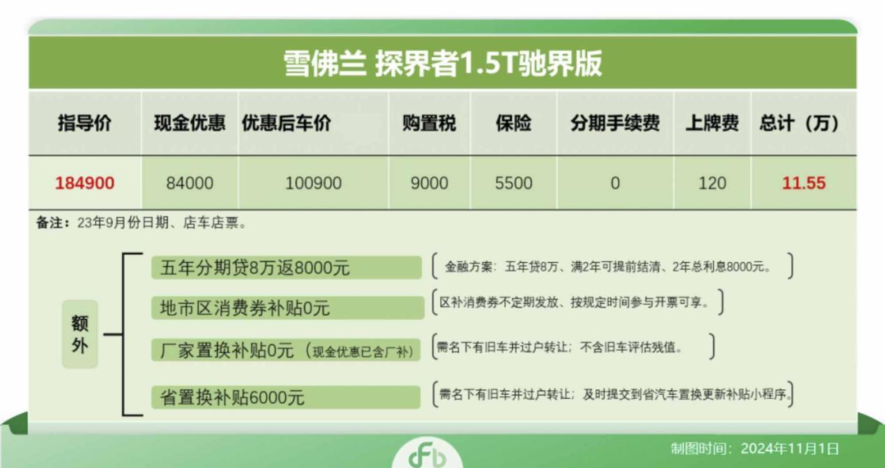 雪佛兰探界者被称为合资SUV中的“操控王子”,原指导价是18.49万,现在跌至10.29万,搭载237匹马力+9AT变速箱+适时四驱的动力组合,听起来就让人直呼“真香”!探界者最近半年一直在清库存,已经不生产了,最近在售生产日期均为23年底,国内散卖,出口量不错,目前这辆车全款优惠8.4万、分期优惠9.2万,基本上5折了。