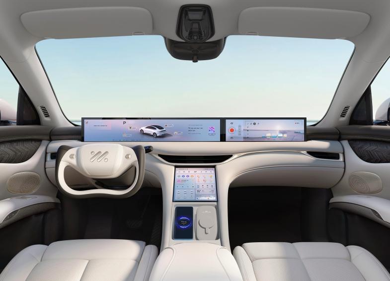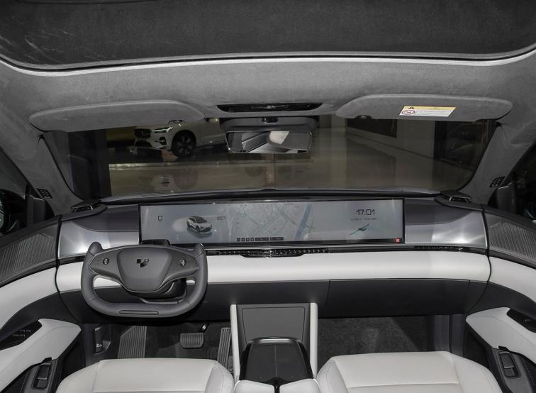 极越01车内配备了中置的贯穿曲面连屏设计,并且搭配U型方向盘,这块车机屏幕搭载高通骁龙8295P芯片,提升了屏幕流畅性,支持OTA系统升级,蓝牙电话,语音控制,车联网,车载导航等多种功能,车内配有多色氛围灯,点亮后增加了内饰豪华感,360度全景影像也是全系标配,可以通过全景影像查看车辆四周情况。