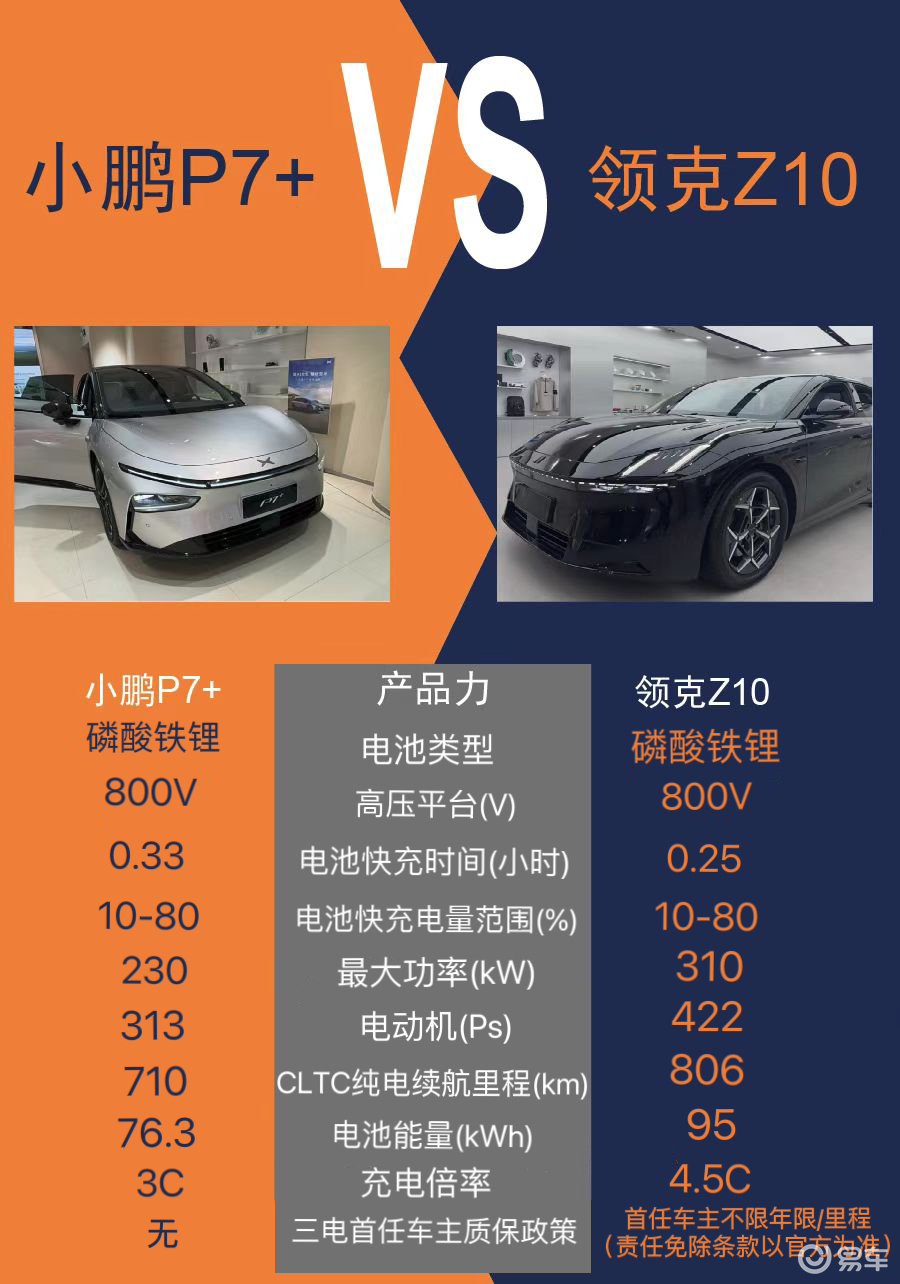 相对而言,小鹏P7+搭载的是亿纬动力电池,主要用在低端品牌上,领克Z10光在续航上就占有明显的优势,电池成本也要贵1万左右。同时还要值得注意的是,两款车虽然都是800V架构,但是领克Z10的充电倍率高,是4.5C的充电倍率,很多用户和媒体实测10%到80%的补能只需要15分钟,而小鹏P7+则是3C的充电倍率,10%-80%需要20分钟。