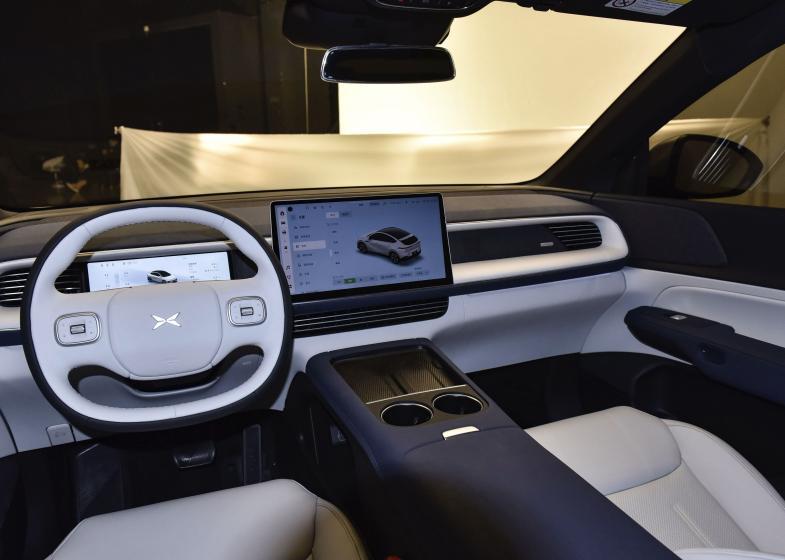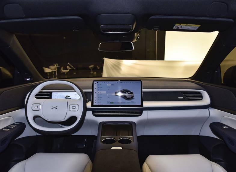 小鹏G6仪表盘以及车机屏幕采用分体式设计,车机搭载高通骁龙8155芯片,车机屏幕尺寸达到了14.96英寸,同样支持语音控制,第三方APP等互联功能。但是就设计而言,小鹏G6的座舱就相对而言比较传统。
