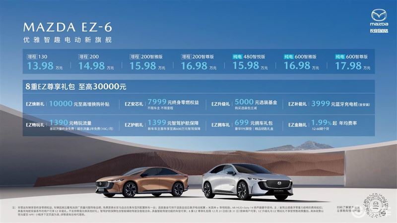在好看、好开、好安全、好智能的「四好」基础上,MAZDA EZ-6更为国内市场用户带来了好价格。为了展现转型新能源市场的坚定决心,和拥抱中国用户的诚心,长安马自达在合资B级轿车市场首次打出了13.98万元的超低起售价,和高达30,000元的购车权益,只为和中国市场用户“交个朋友”。