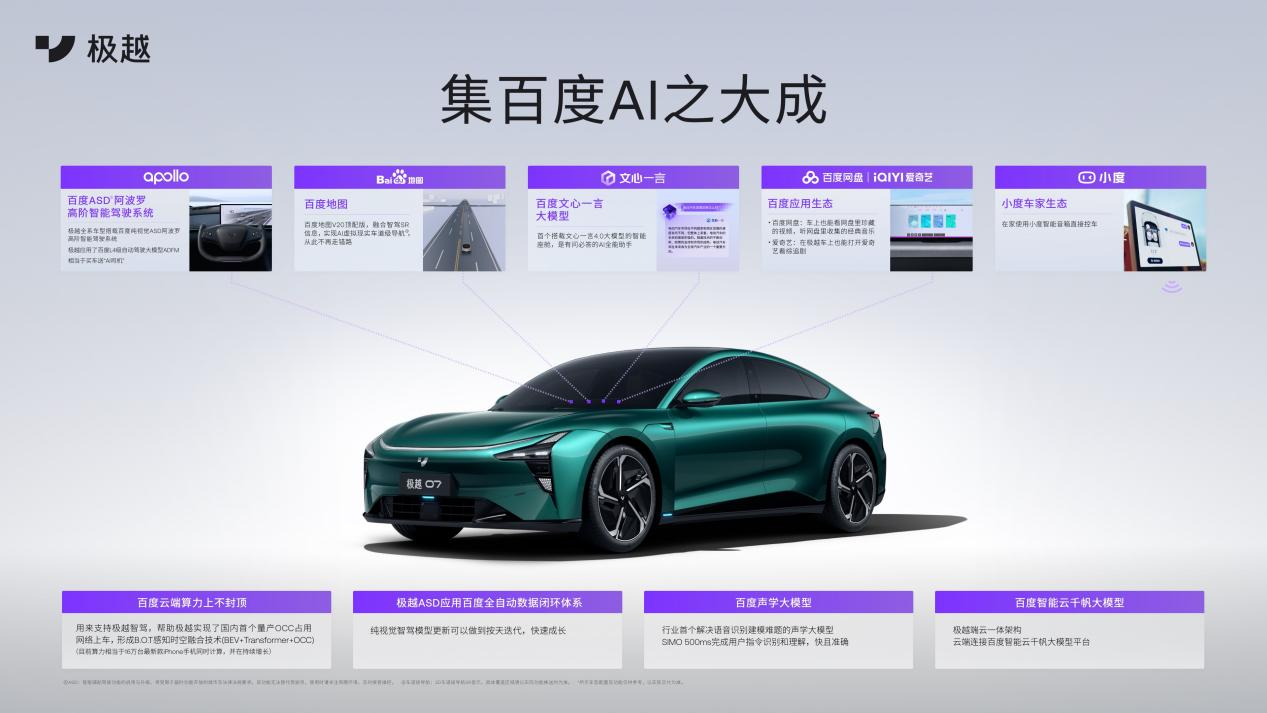 极越07不仅是一款优秀的智能汽车,不仅汇集了百度、吉利、宁德时代三家企业的优势资源,更是百度AI技术在汽车领域的集大成者。