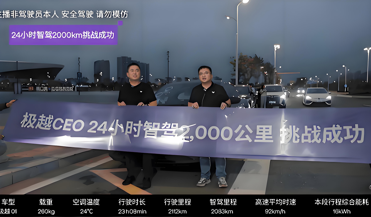 值得一提的是,此前极越CEO夏一平曾做了一次2000公里、24小时不间断智驾直播挑战智驾挑战。面对复杂多变的道路以及天气环境变化,智驾行驶里程达99.5%。