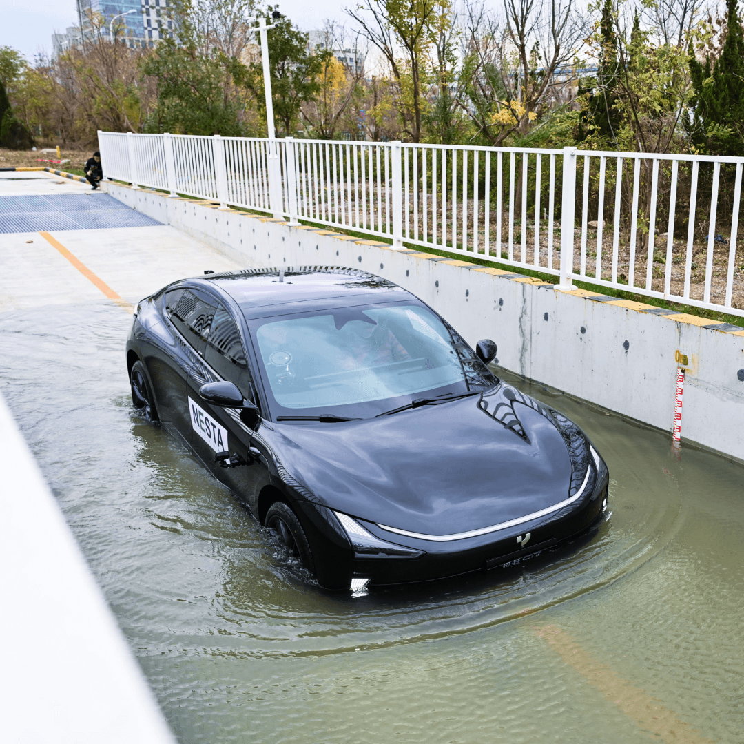 在续航影响方面,底盘动态的表现也起着至关重要的作用。极越07的风阻系数达到了0.198cd,这一成绩在行业中处于领先优势。这一成绩的取得得益于其优秀的车身设计和底盘平整度优化。低风阻不仅有助于提升车辆的续航能力,还能减少能耗和噪音,提升驾驶品质。而极氪001的风阻系数为0.23cd,虽然不算差,但与极越07相比还是有一定的差距。这直接影响了两款车型在相同电池容量下的续航能力。以100度电池为例,极越07在CLTC工况下的续航里程可以达到880公里,而极氪001的续航里程则为750公里左右。这一差距在长途旅行或日常使用中可能会带来较为明显的体验差异。值得一提的是,极越07的电池包采用了双密封设计,其通过了50cm深水行车测试,还能够承受24小时、1米水深的密闭考验,就算底板外表面不幸破损了,依旧能通过IP68防护等级测试。另外,极越07在受雷击、辐射的测试中表现同样出色,用实打实的测试结果向用户递交了安全保证书。