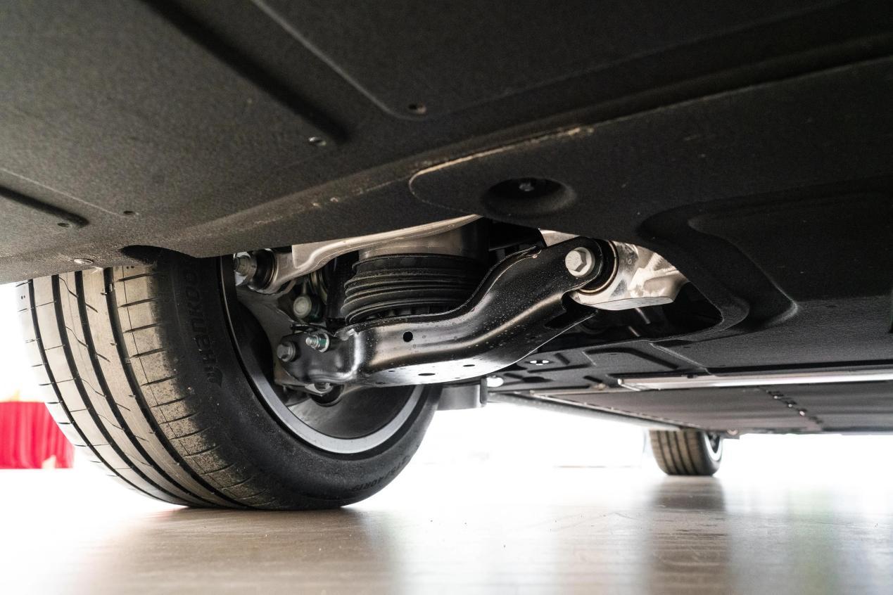 极越07采用了前双叉臂后多连杆的悬挂组合,官方名称前全铝双叉臂 + 后全铝H-Arm多连杆悬架,用料很良心。