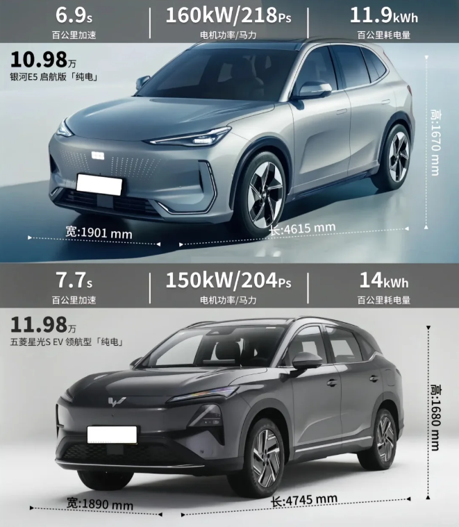 五菱星光S与吉利银河E5对比:续航与配置成关键购车因素