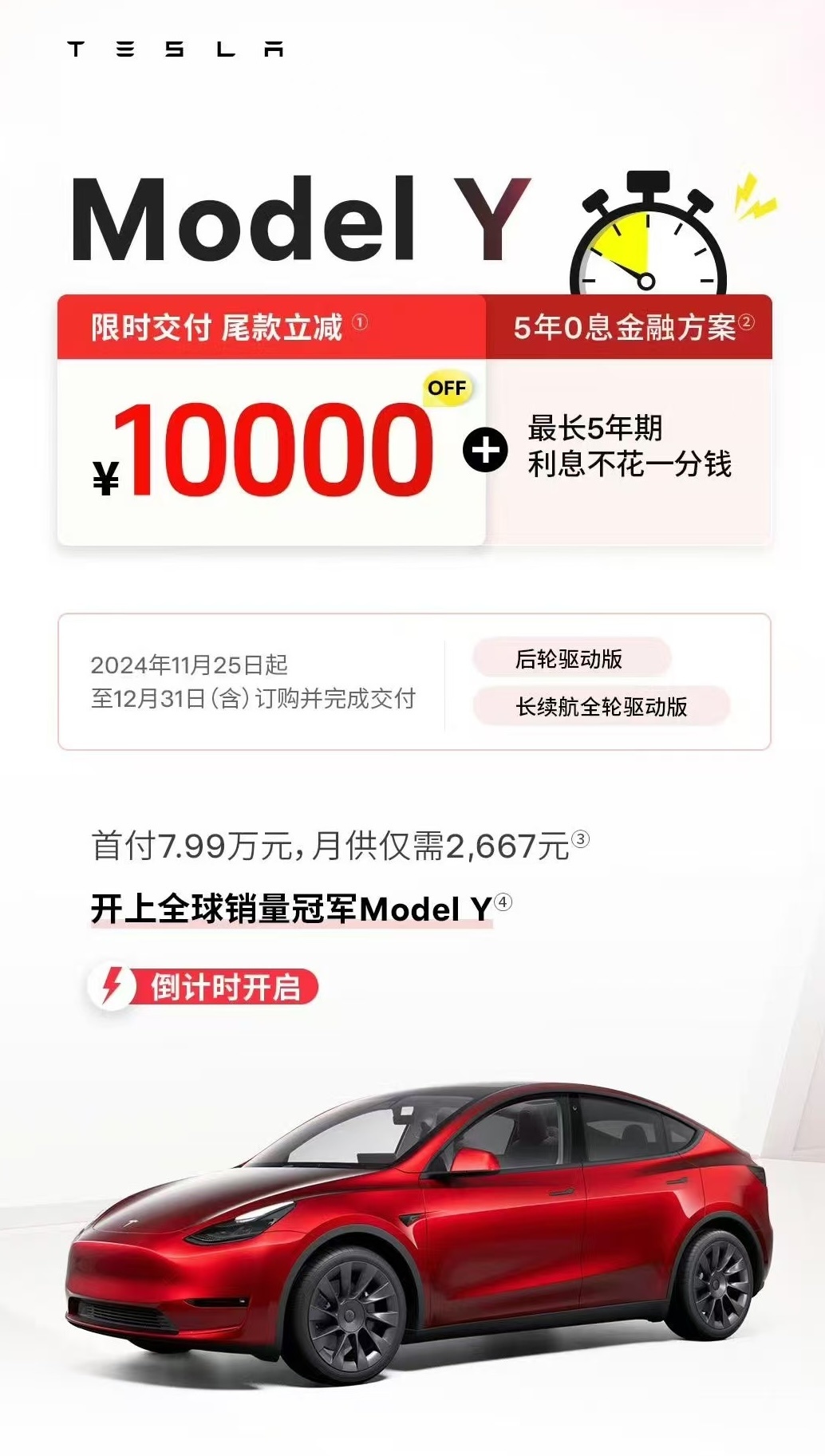 (原标题:现款Model,Y限时优惠1万,可叠加5年0息)