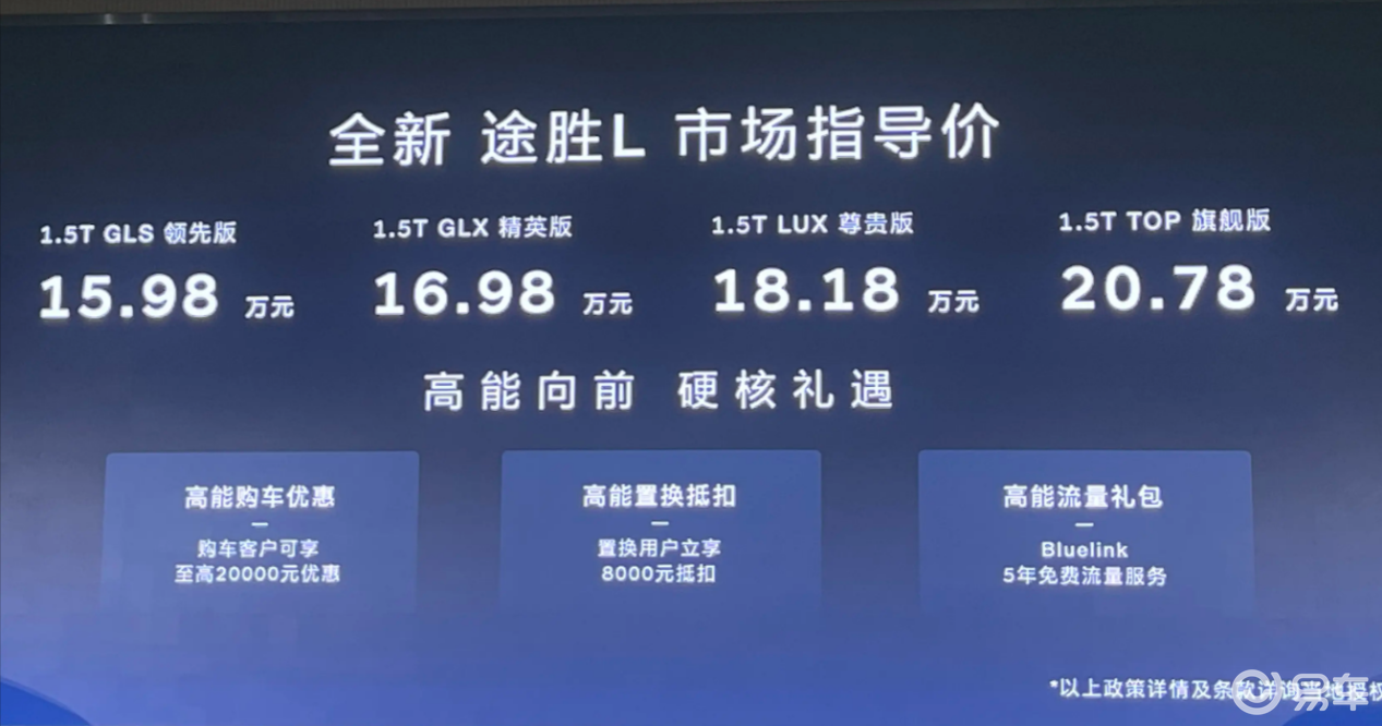 11月26日,全新途胜L正式上市,售价15.98-20.78万元,同时提供最多20000元优惠。