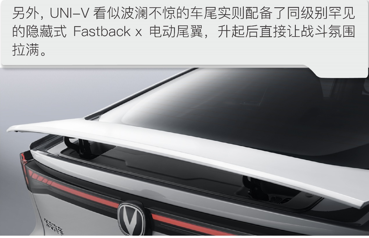 从低矮的车身姿态到动感的线条设计,从梦幻的内饰布局到丰富的智慧功能,从更强的扭矩表现到强化的弯道控制,还有运动座椅、隐藏式尾翼这样的惊喜细节,不到12万的UNI-V最大限度的诠释了何谓运动,何谓为年轻人打造的车。比起星瑞和艾瑞泽8在运动主题上的扭扭捏捏,我想没有哪个年轻人能拒绝更纯粹更真我的UNI-V。