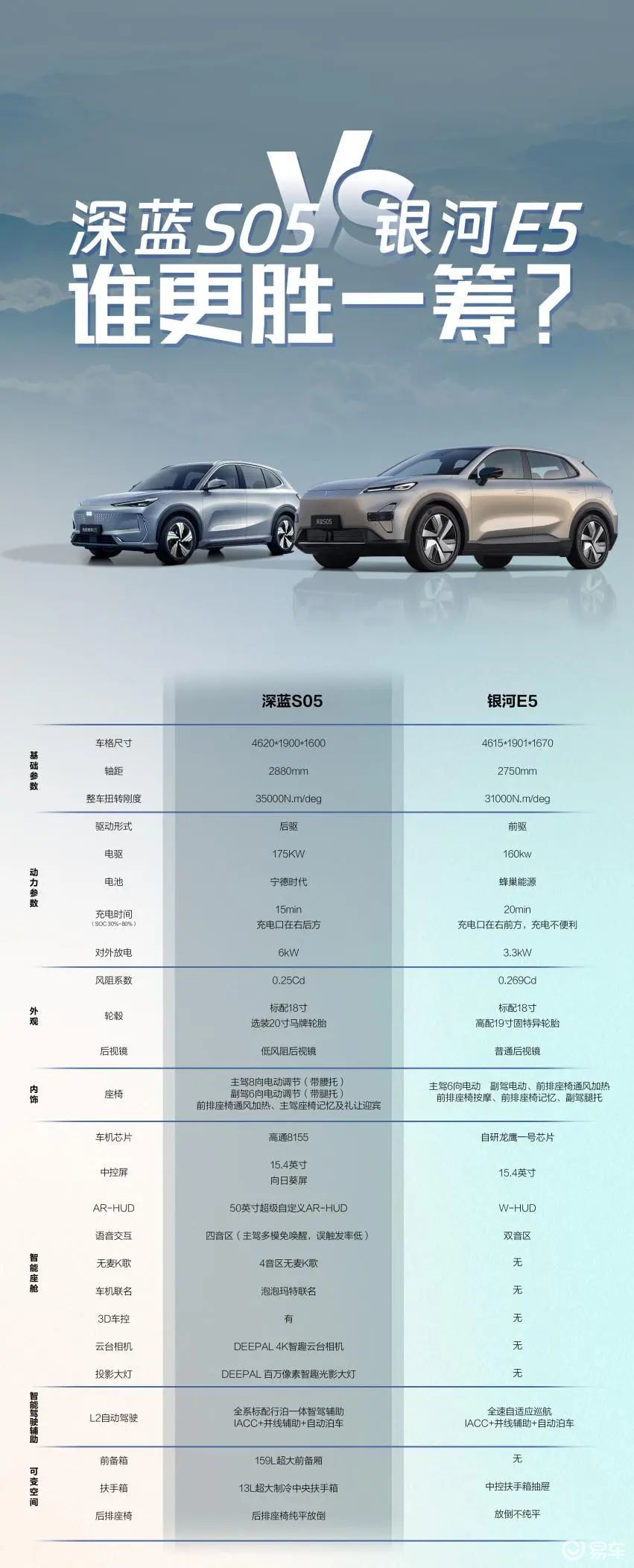 那么在15万元的区间,到底是深蓝S05推翻前浪,还是银河E5闪亮依旧呢?