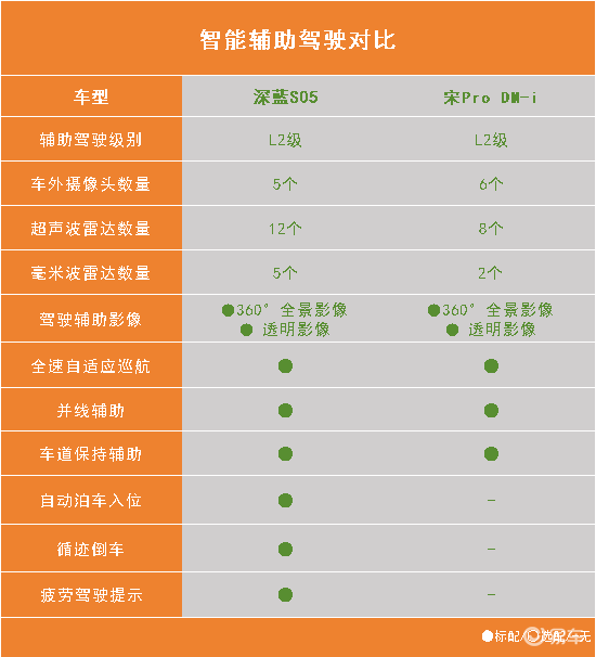 智驾辅助方面,两车智驾虽都达到L2级别,但细品来看,深蓝S05比宋Pro DM-i有更多智能感知硬件,如超声波雷达/毫米波雷达数量,均多过宋Pro DM-i;包括深蓝S05具备的自动泊车、循迹倒车、主动式疲劳检测等功能,宋Pro DM-i均不具备。论智驾体验,后浪选手深蓝S05,的确占据一定优势。