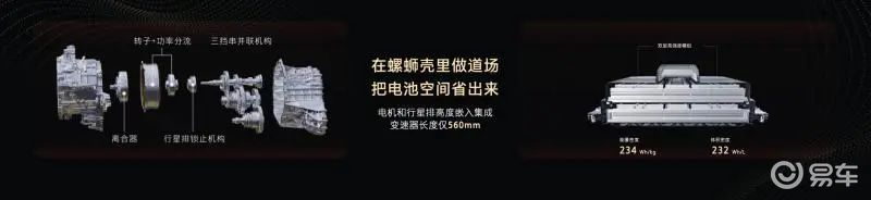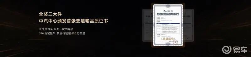在结构方面,Hi4-Z拥有全球最短的变速器箱,通过电机转子与行星排嵌套式设计,超薄离合器机构,传动轴与主减一体焊接技术,低摩擦锥轴承,2微米级高精度磨齿工艺等30余项发明专利技术,实现了560mm的纵向尺寸,比单档混联变速器箱短20%,为电池布置腾出空间。不仅如此,Hi4-Z还通过中汽中心专业、严苛的变速箱全域负荷工况挑战。获得了国内首张“顶级变速箱品质挑战证书”。