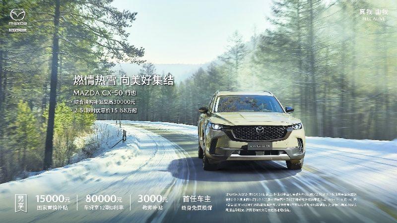 再看MAZDA CX-50行也,这款2.5L车型当前限时售价为15.88万元起,并有综合补贴至高30000元。值得一提的是,消费者在贷款80000元购车时,还可以享受12期0利率的金融政策,这极大地降低了购车的财务压力,使其成为近年来颇受青睐的跨界SUV。一系列政策无疑为有购车意向的人士增加了诸多选择。