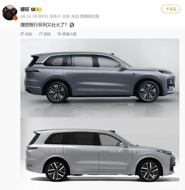 12月10日,理想高管“硬哥”贴出了深蓝S09和理想L9的车身侧面照,并配文“理想智行系列又壮大了?”疑似内涵深蓝S09像理想L9。