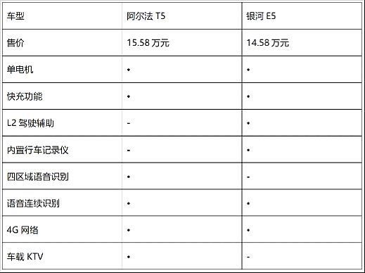 与银河E5相比,阿尔法T5在动力性能上有一定优势,智能化方面稍有不足。在实际用车过程中,消费者更看重的还是动力、续航等方面的表现。一款15万元左右的新能源车型,用户对它的智能化并没有多么高的要求。