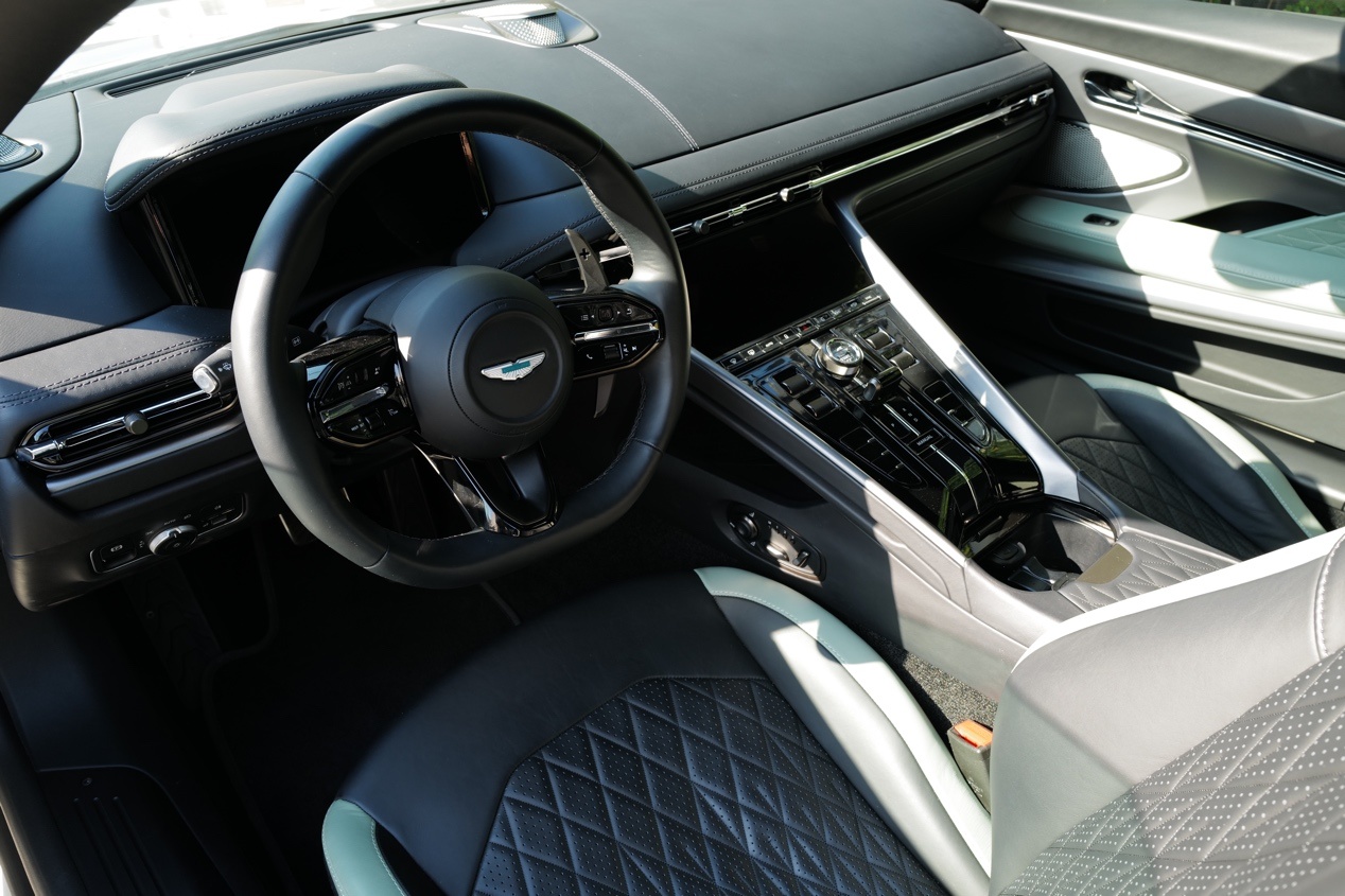 DB系列外形确实经典,这一代DB12的样子变化并不大。车头经典的叶片式格栅、车侧花体造型侧腮通风口、还有车尾的气流风刃都得到了保留。细节方面,中网的面积明显更大,配备特别定制的21寸米其林PS5轮胎(带“AML”字样),还有无边框翼形外后视镜也是新设计的。