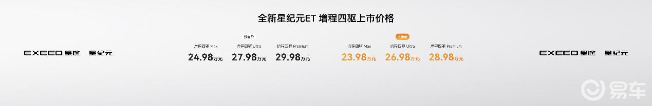 12月15日,星途品牌旗下全新ET="_blank">星纪元ET增程四驱正式上市,新车共推出3款配置版型,官方指导价为23.98万元-28.98万元。同时,新车可享受2万元置换补贴、首任车主终身质保等五重购车权益。