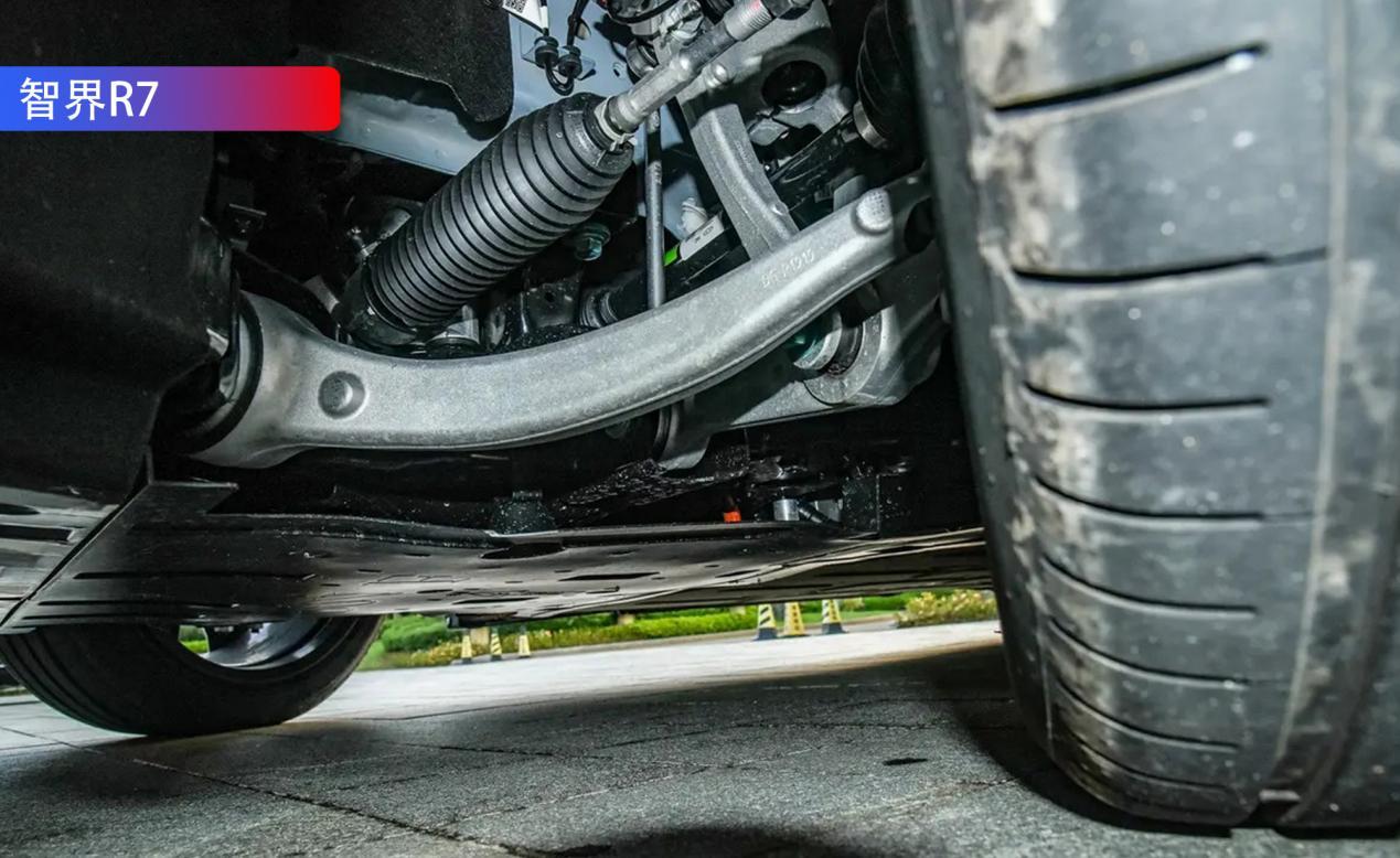 在智界R7搭载华为“满血”途灵平台,采用了前虚拟主销双叉臂及后五连杆独立悬架,并且全系标配连续可变阻尼减振器和空气悬架,悬架支持软硬、高低调节,并首发搭载了主动智能防滑控制、智能下坡巡航、主动弯道控制功能,驾驶功能更全面,驾控感受更舒适。