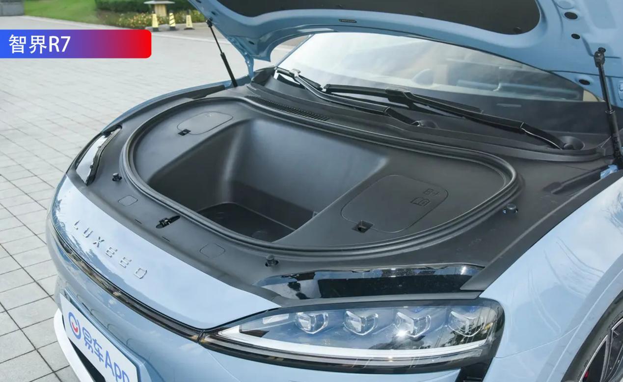值得一提的是智界R7还搭载了创新电吸电弹前备箱,创新电吸电弹前备箱,支持Knock-Knock指关节双击开启,电吸闭合,电弹开启,存取更有仪式感。