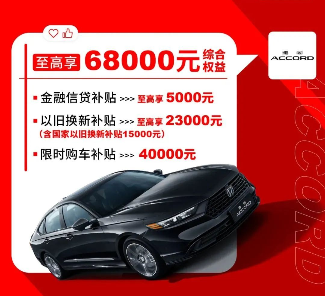 第二款是2025款雅阁,它搭载了Honda SENSING 360+智能驾驶辅助系统,实现了360°全域感知,安全性和便利性大大提升。车身设计和底盘技术也做得非常到位,驾驶感受非常稳健。目前这款车的优惠力度也不小,最高可享68000元综合补贴,这波福利真的不容错过!