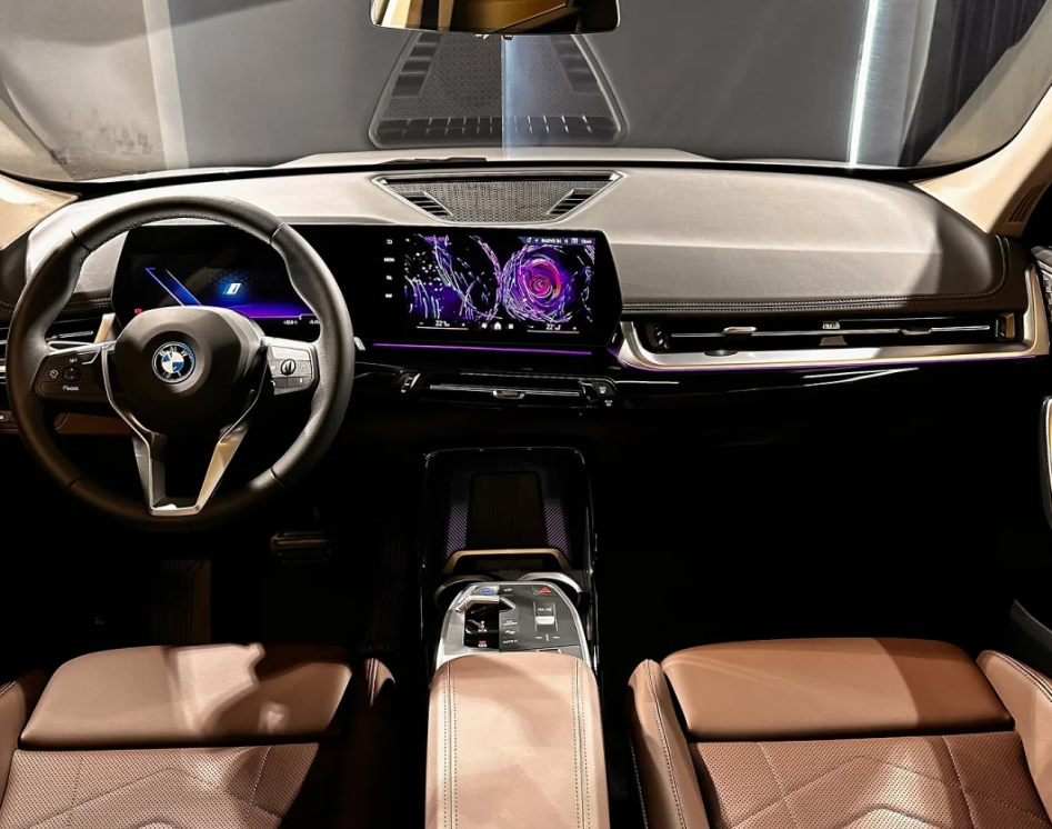 在内饰配置上,宝马iX1同样展现了宝马品牌的豪华属性。它采用了一体式悬浮曲面屏设计,内置第9代BMW操作系统,操作界面更加符合中国用户的习惯。此外,宝马iX1还配备了多色氛围灯和可选装的12扬声器哈曼卡顿音响系统,进一步提升了车内的豪华感。